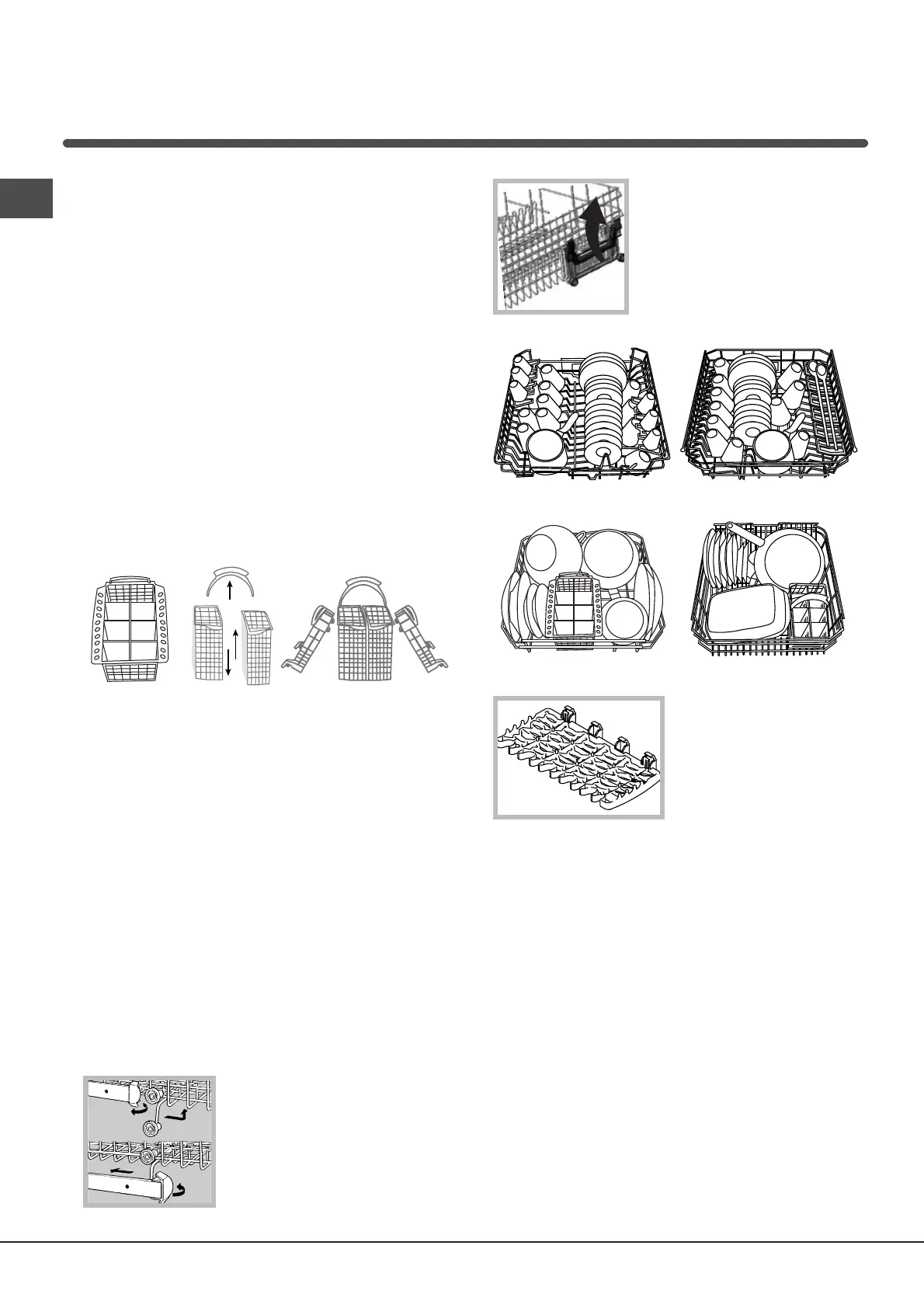 W celu zmywania uchwytów koszy dolnego i górnego:
