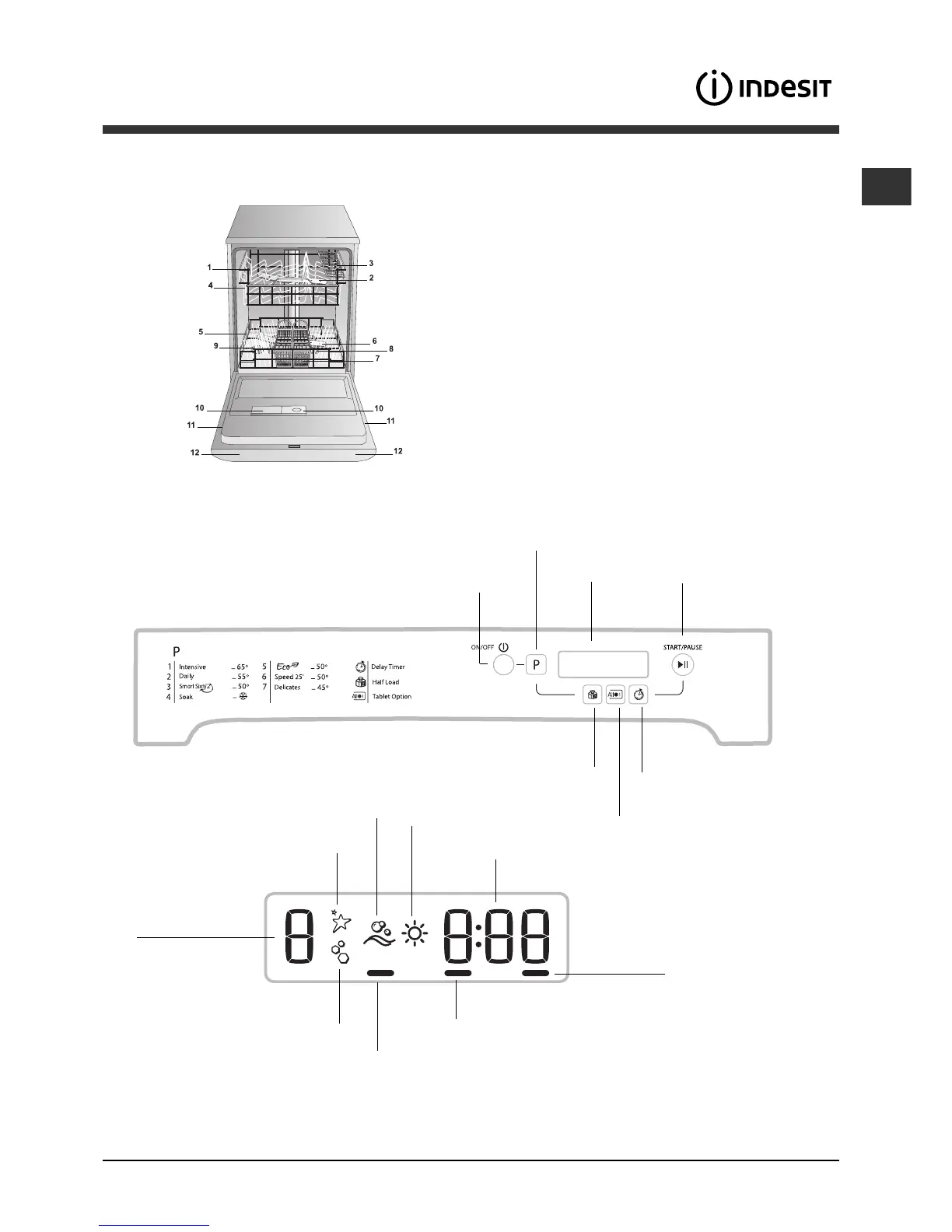 Indesit IDP 148 - Description of the Appliance; Overall View; Control Panel