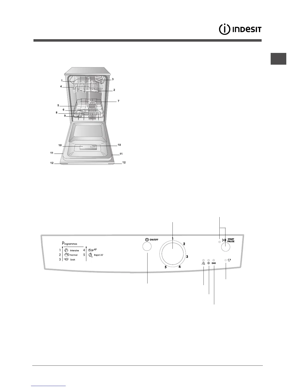 Indesit IDS 105 - Appliance Description; Overall View; Control Panel Overview