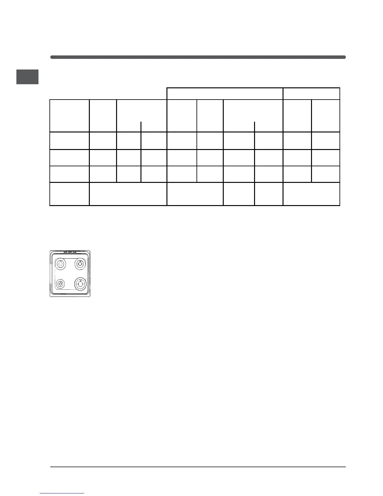 Table of burner and nozzle specifications
