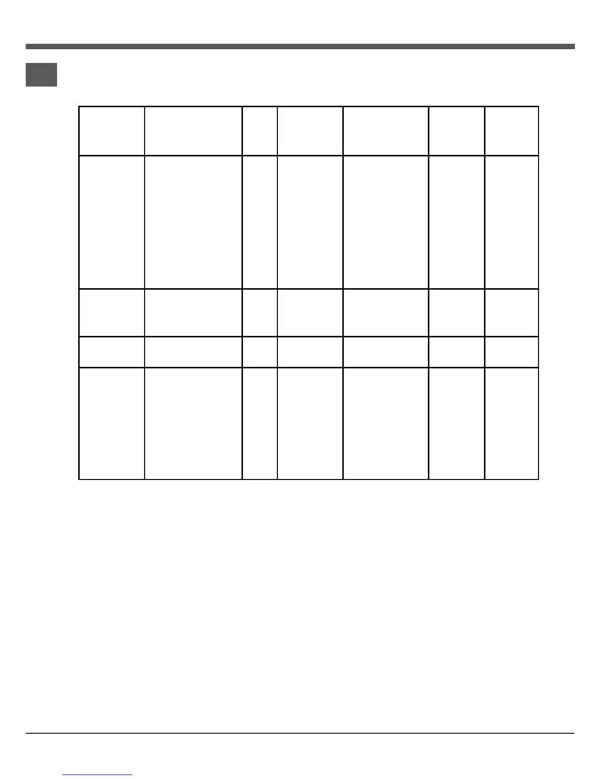 Cooking advice table for the oven