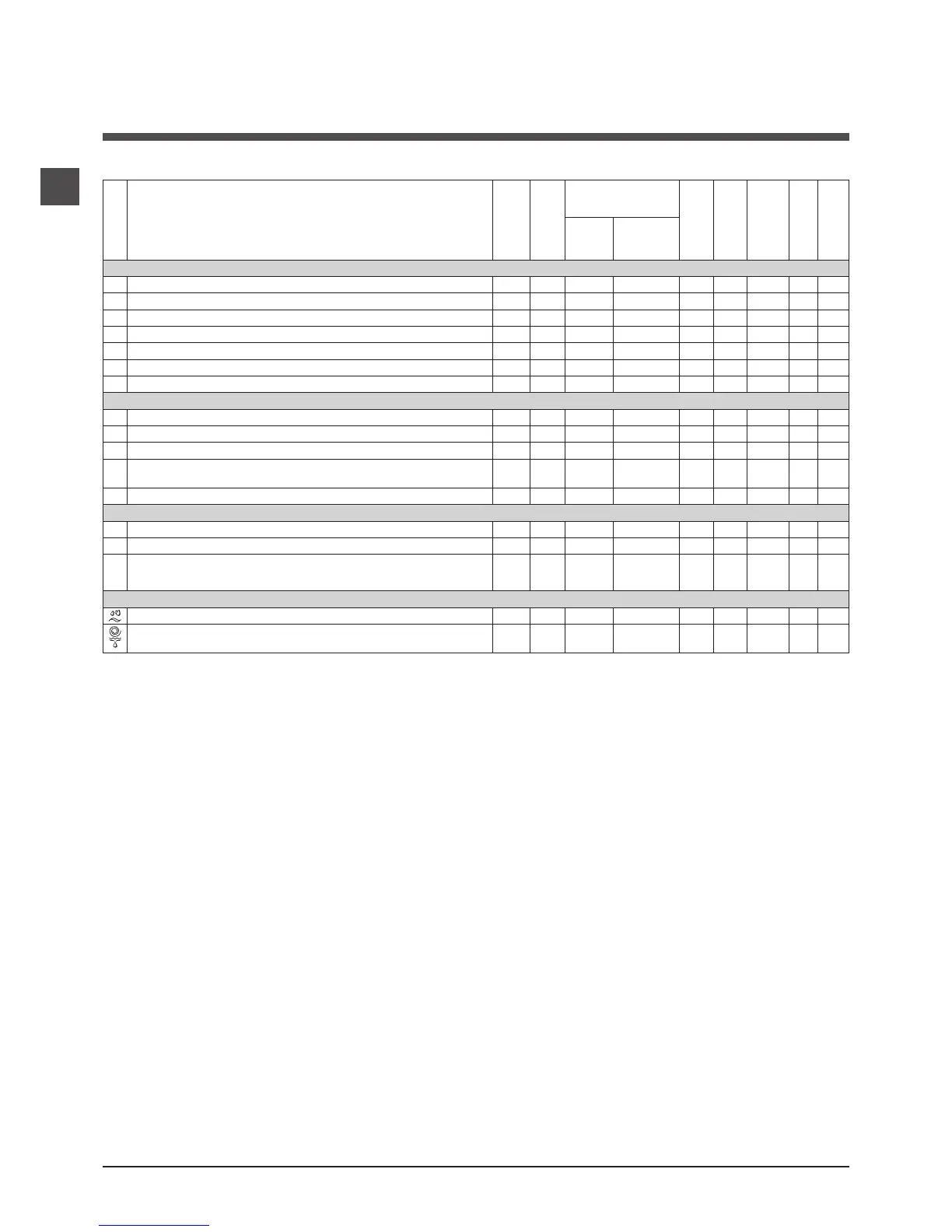 Table of wash cycles