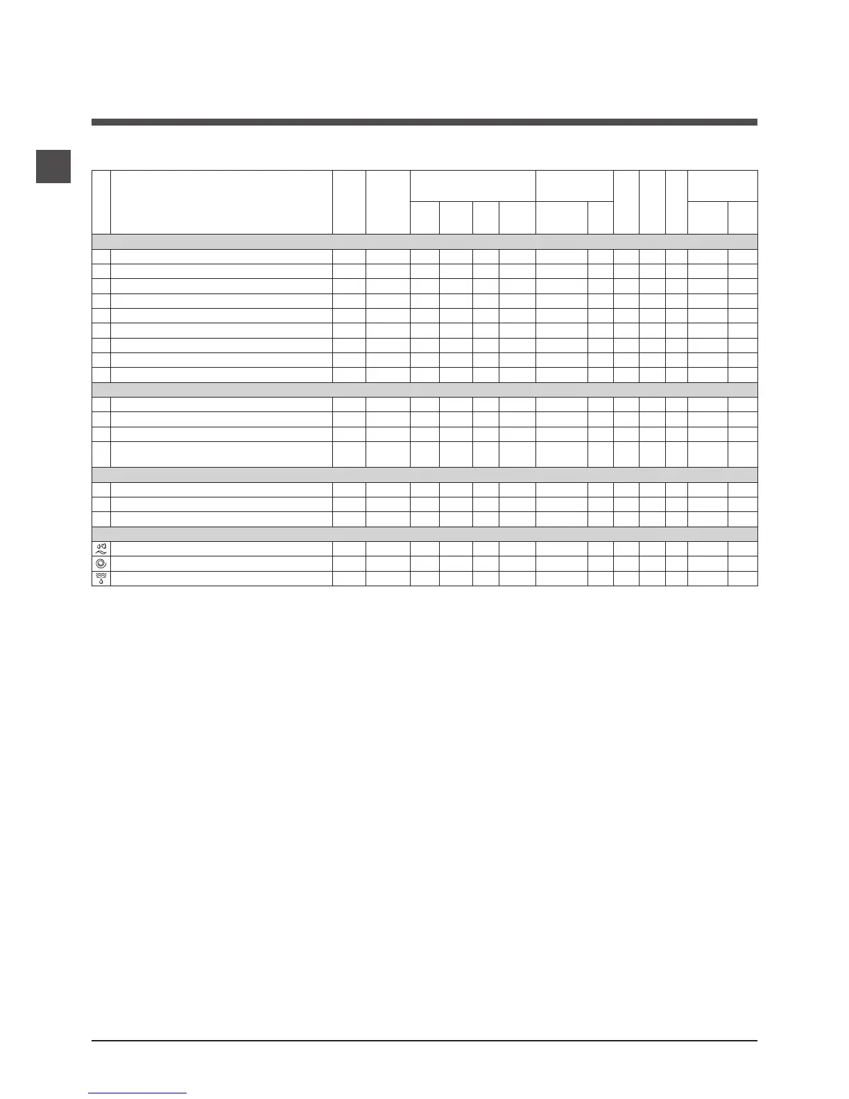 “Tableau des programmes”. Nous recommandons d’utiliser de la lessive liquide, avec une dose pour la demi-charge.