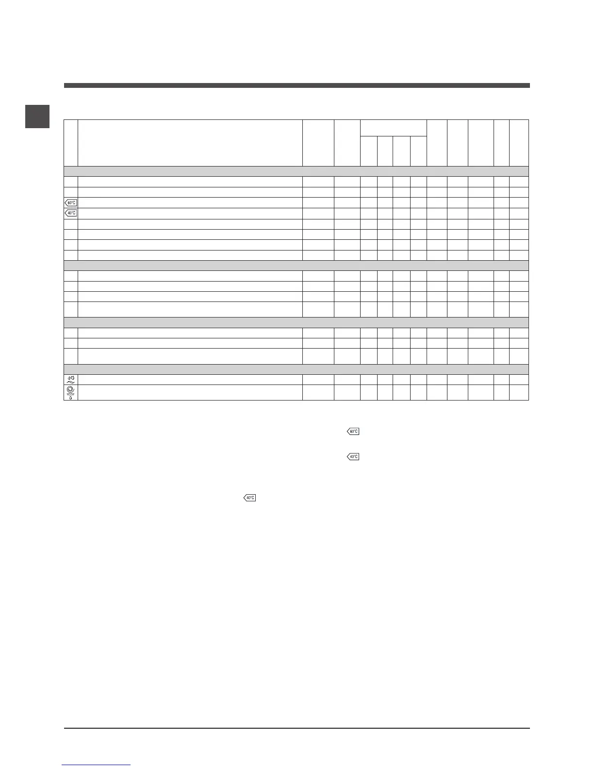 1) Test wash cycle in compliance with directive 1061/2010: set wash cycle with a temperature of 60°C.
