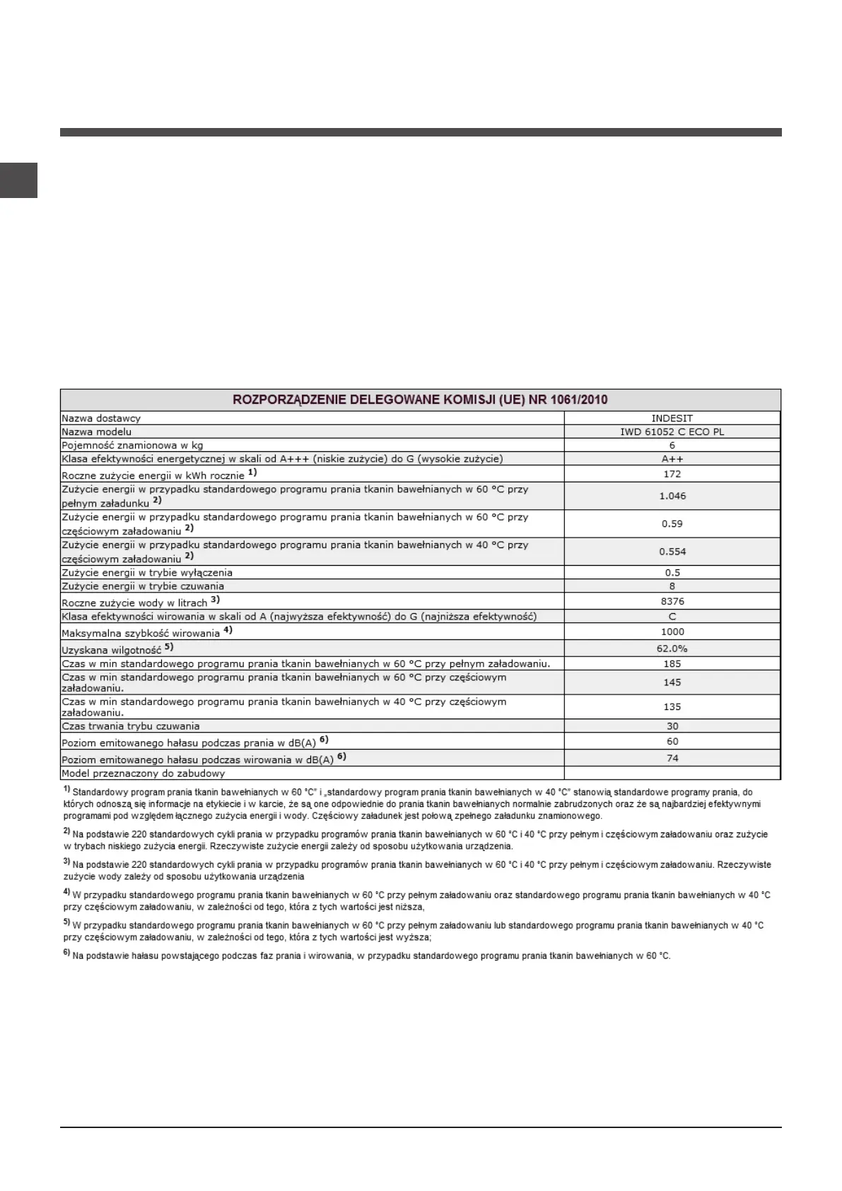 Informacje te znajdują się na tabliczce umieszczonej w tylnej części pralki oraz widocznej z przodu po otwarciu drzwiczek.