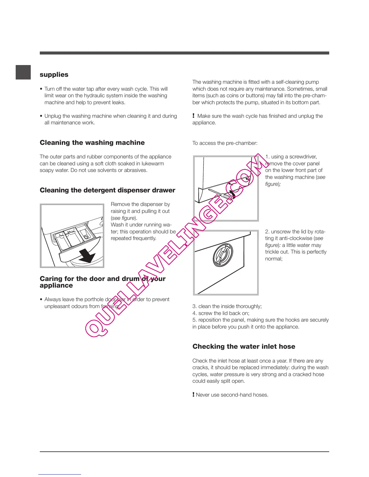 Check the inlet hose at least once a year. If there are any