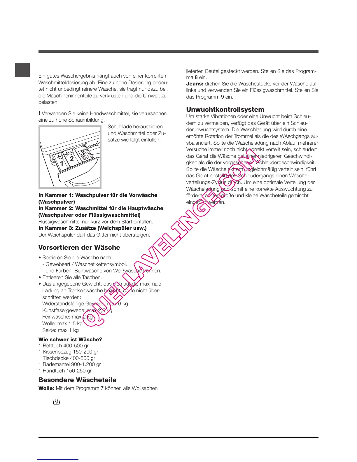 spezifisches Waschmittel und waschen Sie maximal 1,5 kg