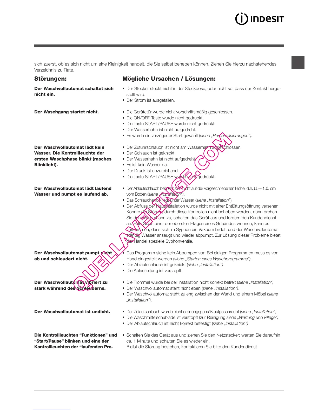• Die Trommel wurde bei der Installation nicht korrekt befreit (siehe „Installation“).
