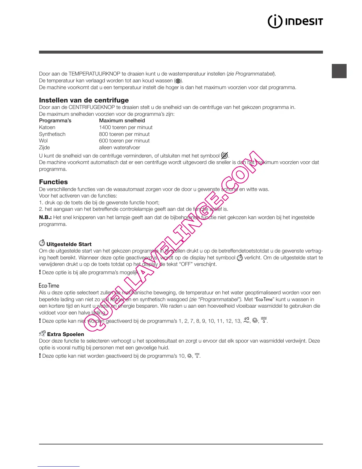 De machine voorkomt dat u een temperatuur instelt die hoger is dan het maximum voorzien voor dat programma.