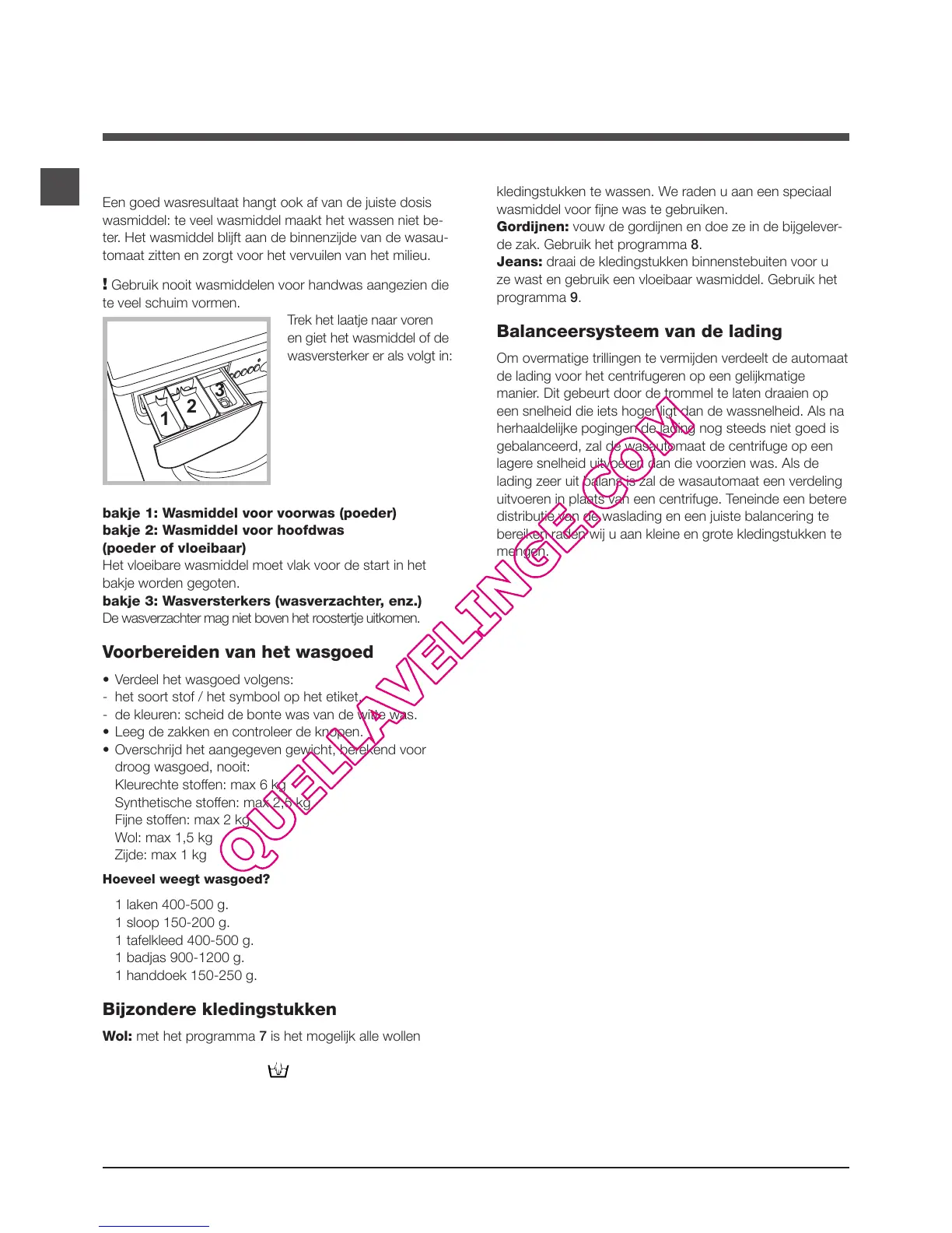 Fijne stoffen: max 2 kg