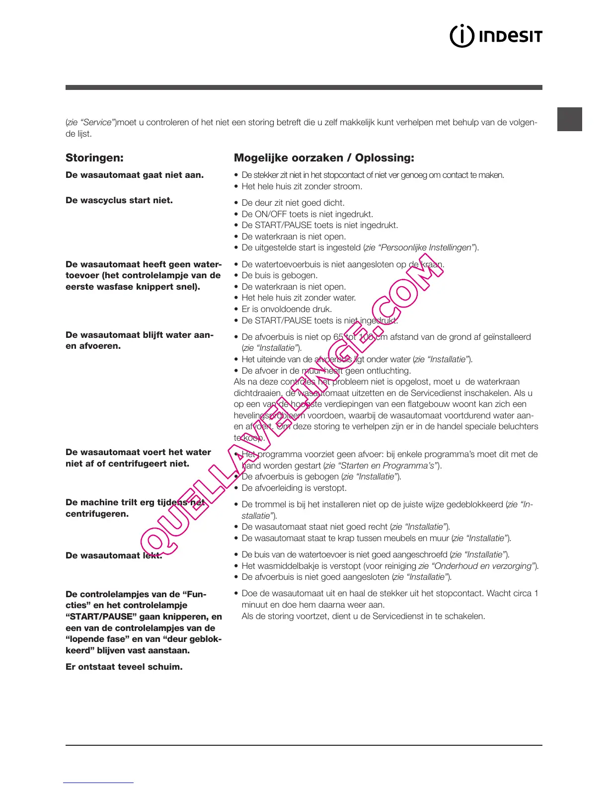 Het kan gebeuren dat de wasautomaat niet werkt. Voor u contact opneemt met de Servicedienst