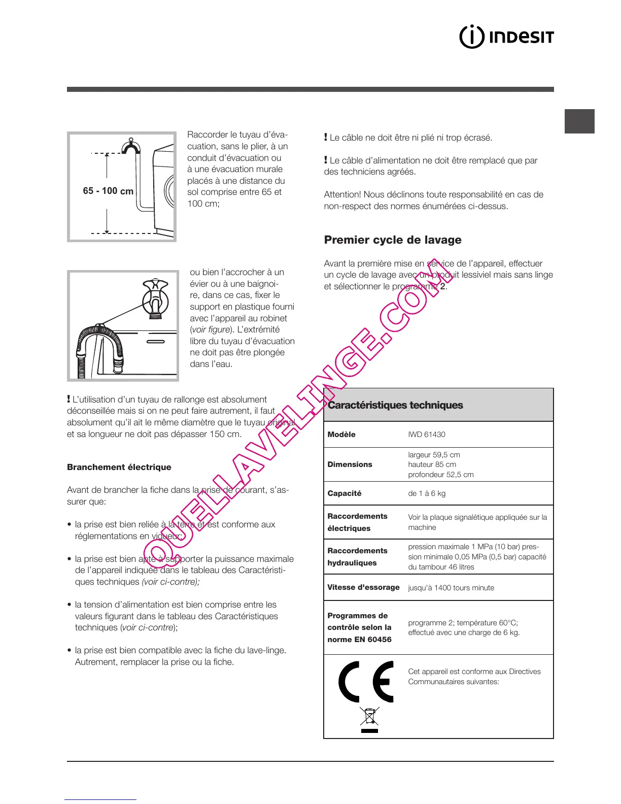 de l’appareil indiquée dans le tableau des Caractéristi-