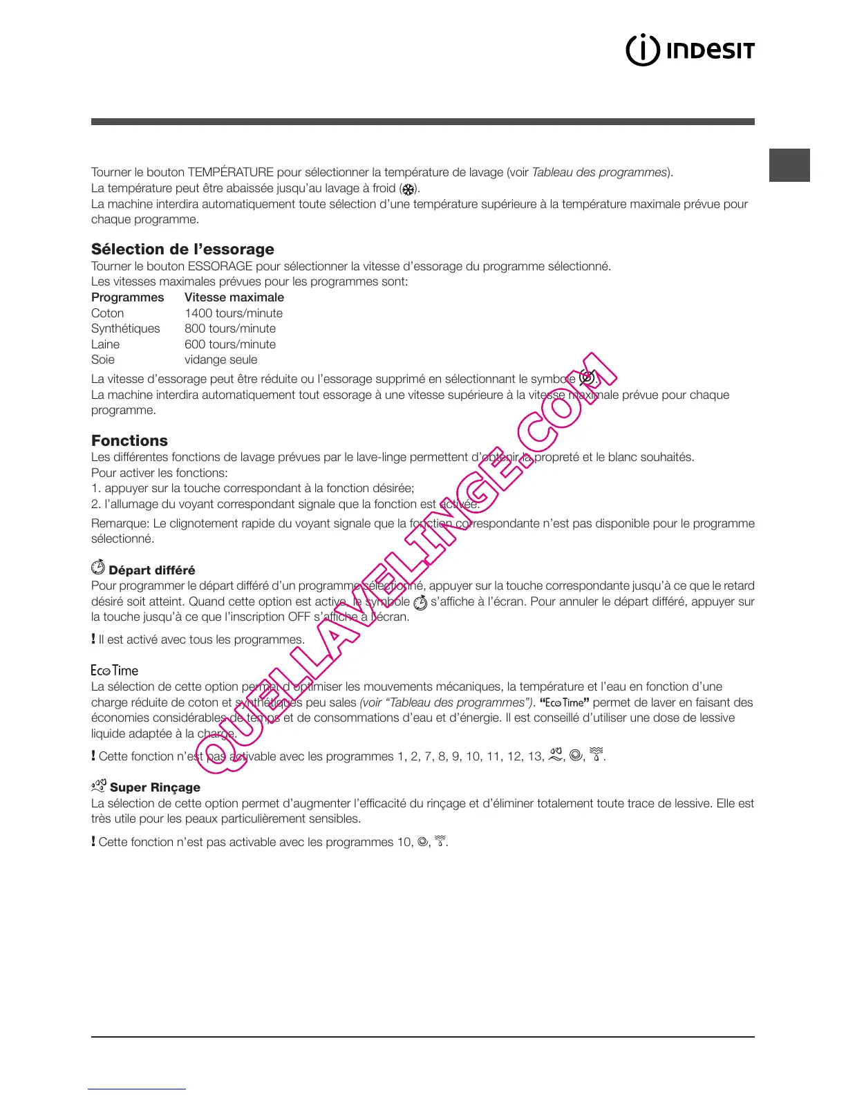 La machine interdira automatiquement tout essorage à une vitesse supérieure à la vitesse maximale prévue pour chaque