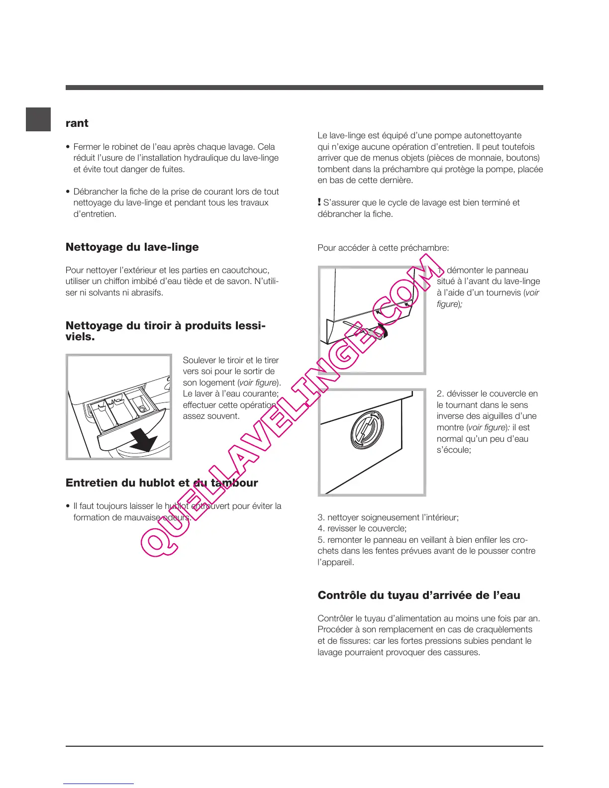 nettoyage du lave-linge et pendant tous les travaux