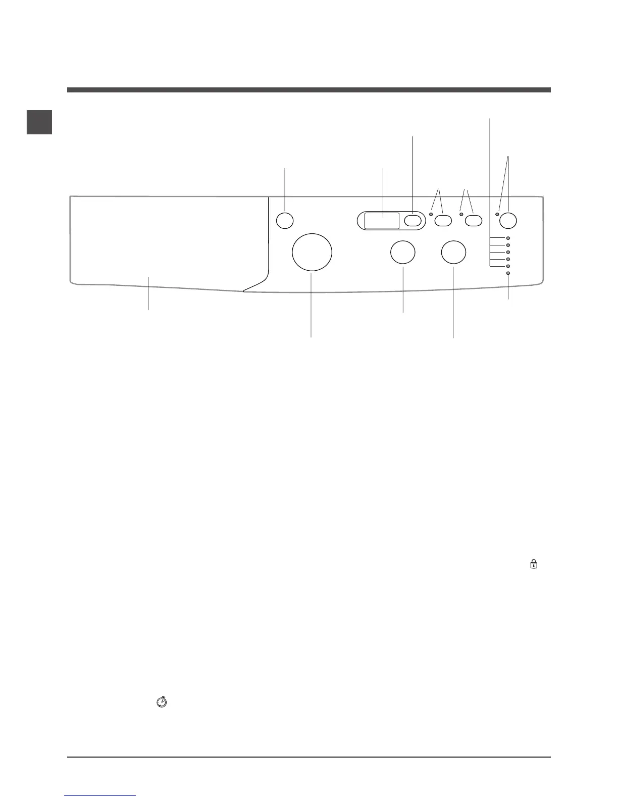 WASH CYCLE knob: programmes the wash cycles. Du-