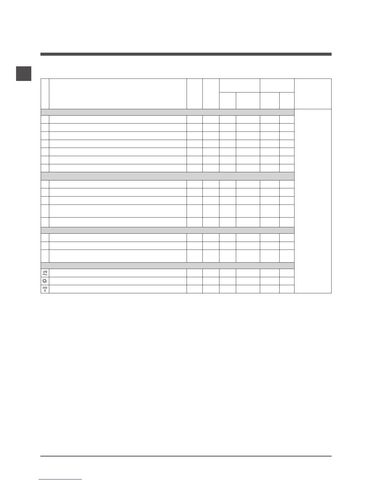 Table of wash cycles