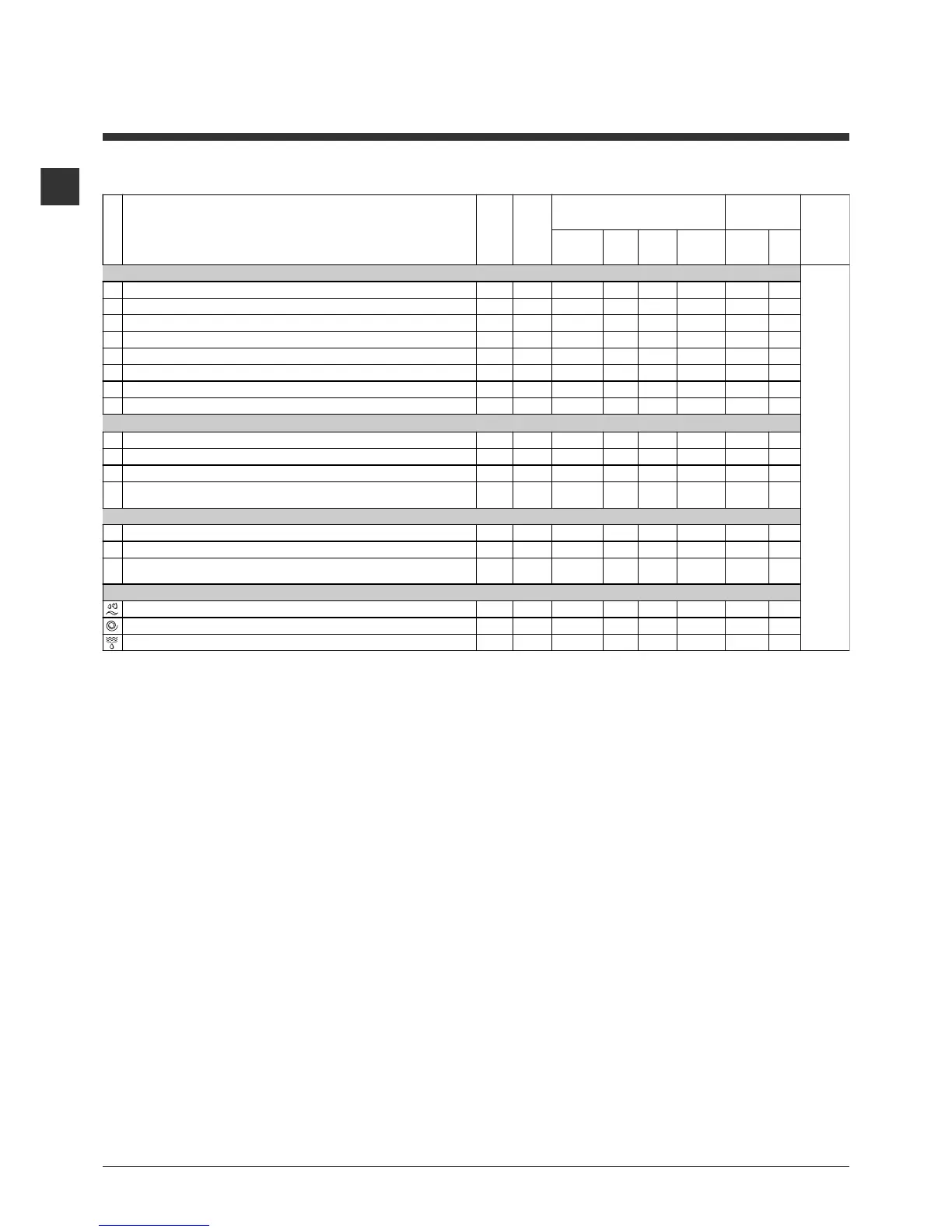 "Table of wash cycles"