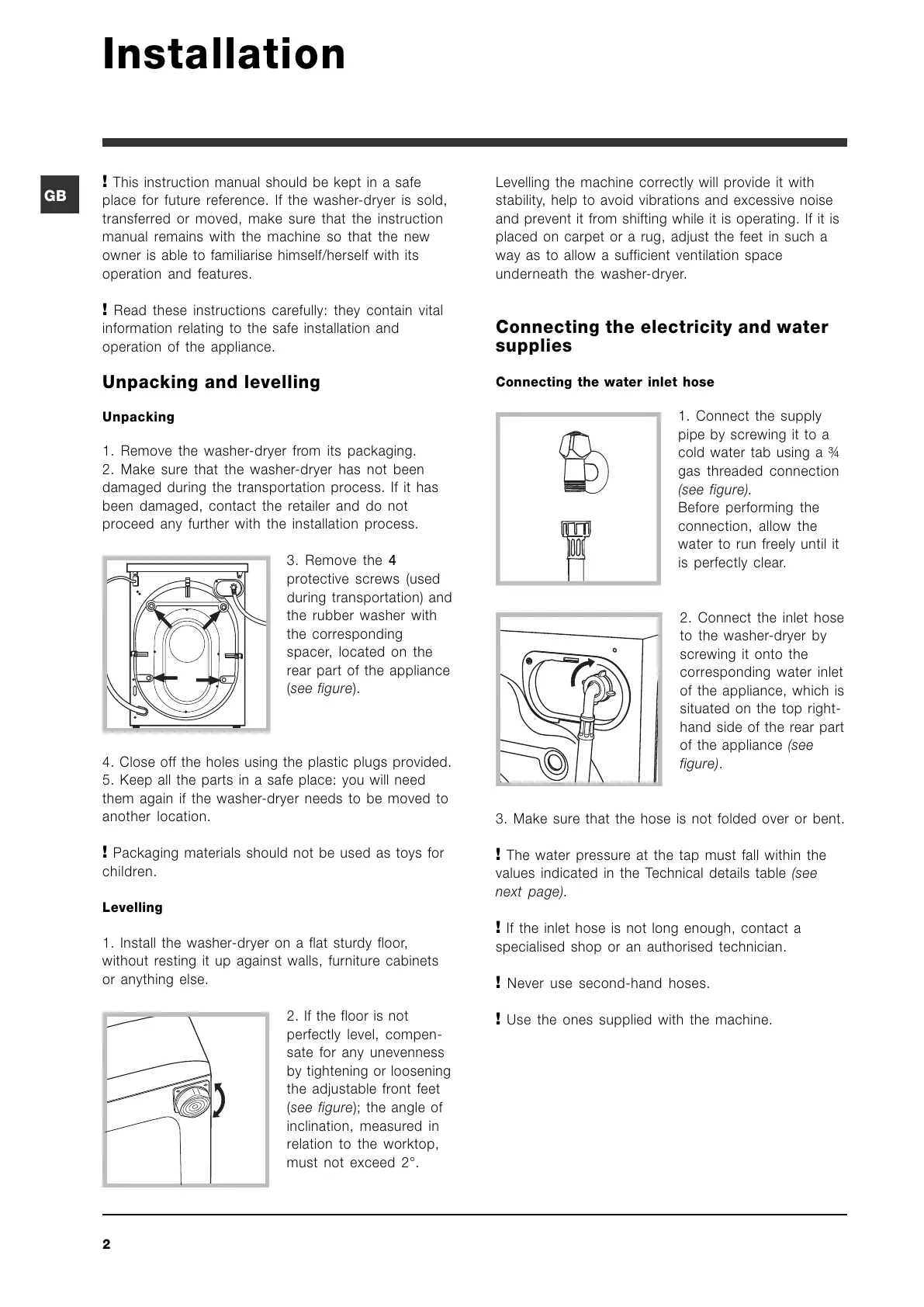 1. Remove the washer-dryer from its packaging.