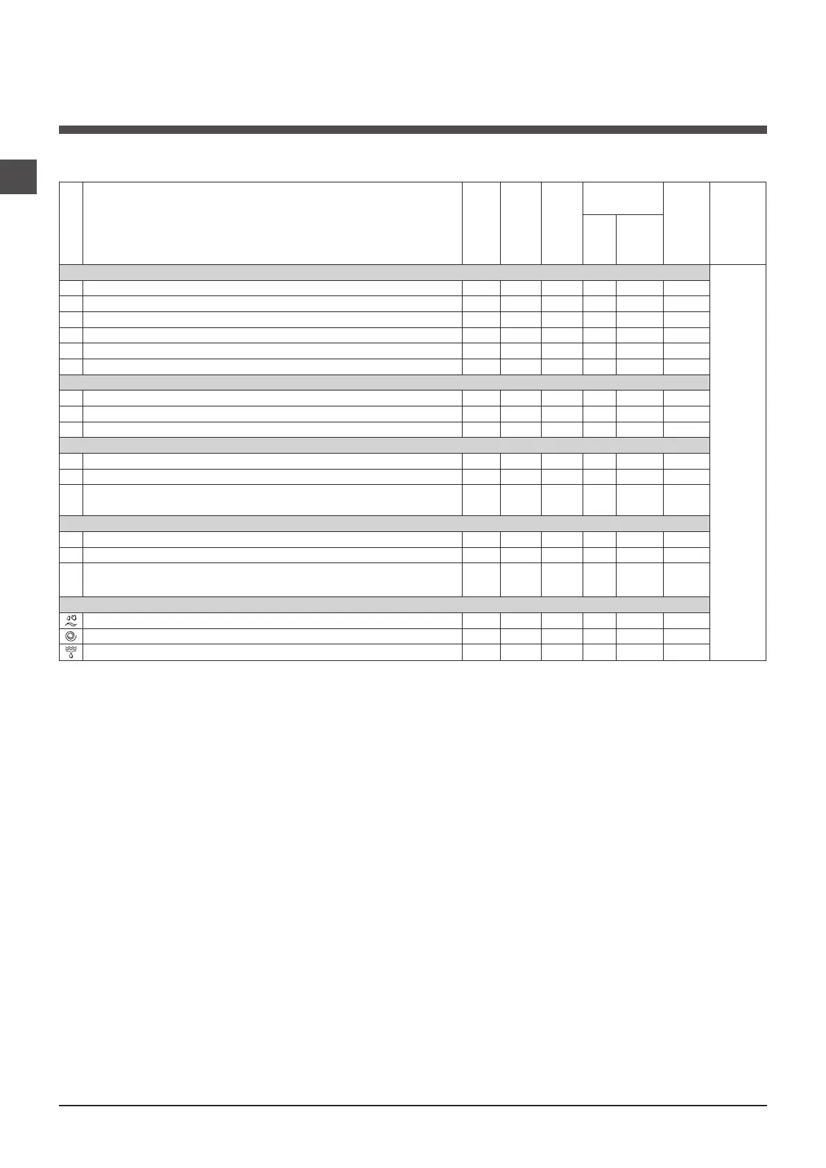Table of wash cycles