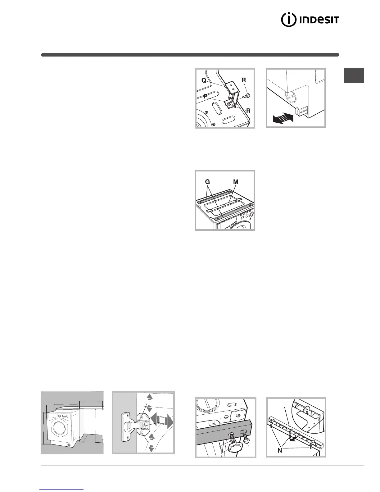 Fasten angle P using screw R, insert plinth guide
