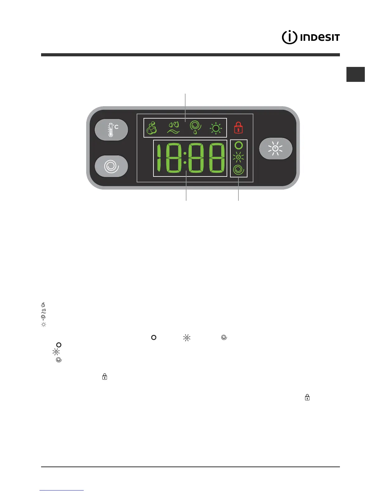 The duration of the available programmes and the remaining time of a running cycle appear in section A; if the