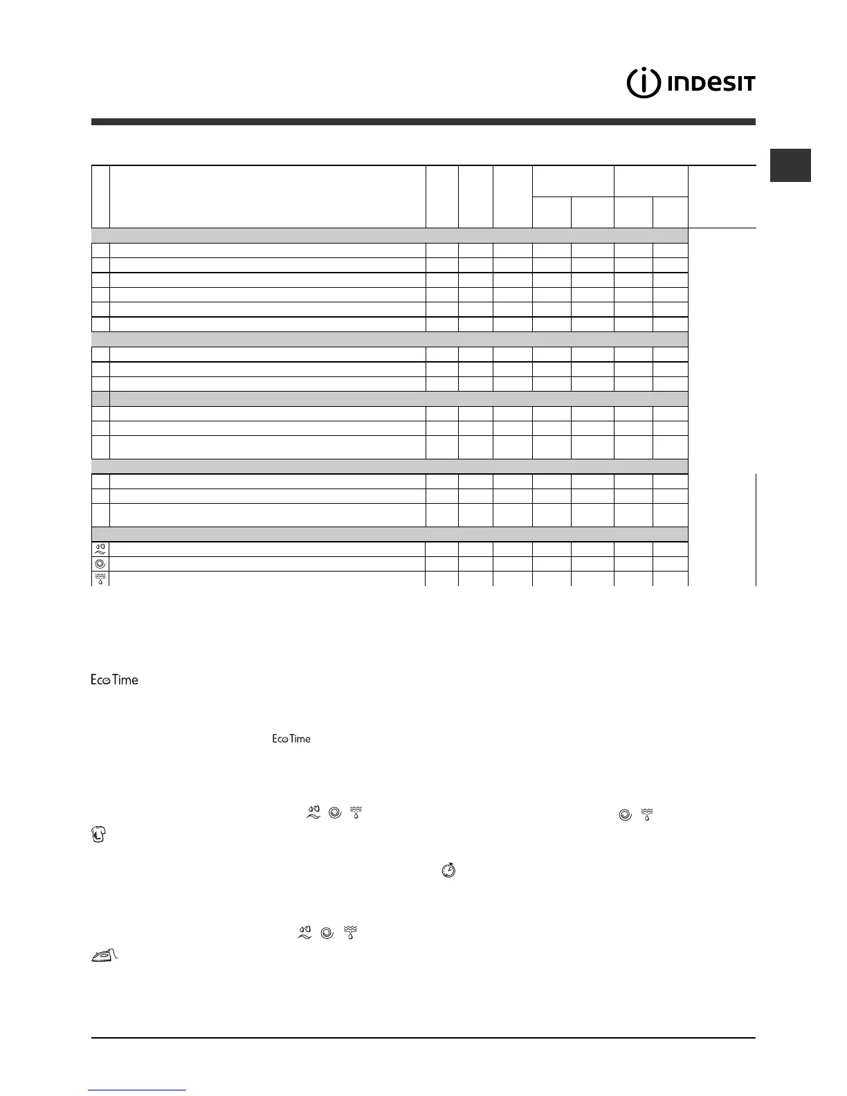 "Table of wash cycles"