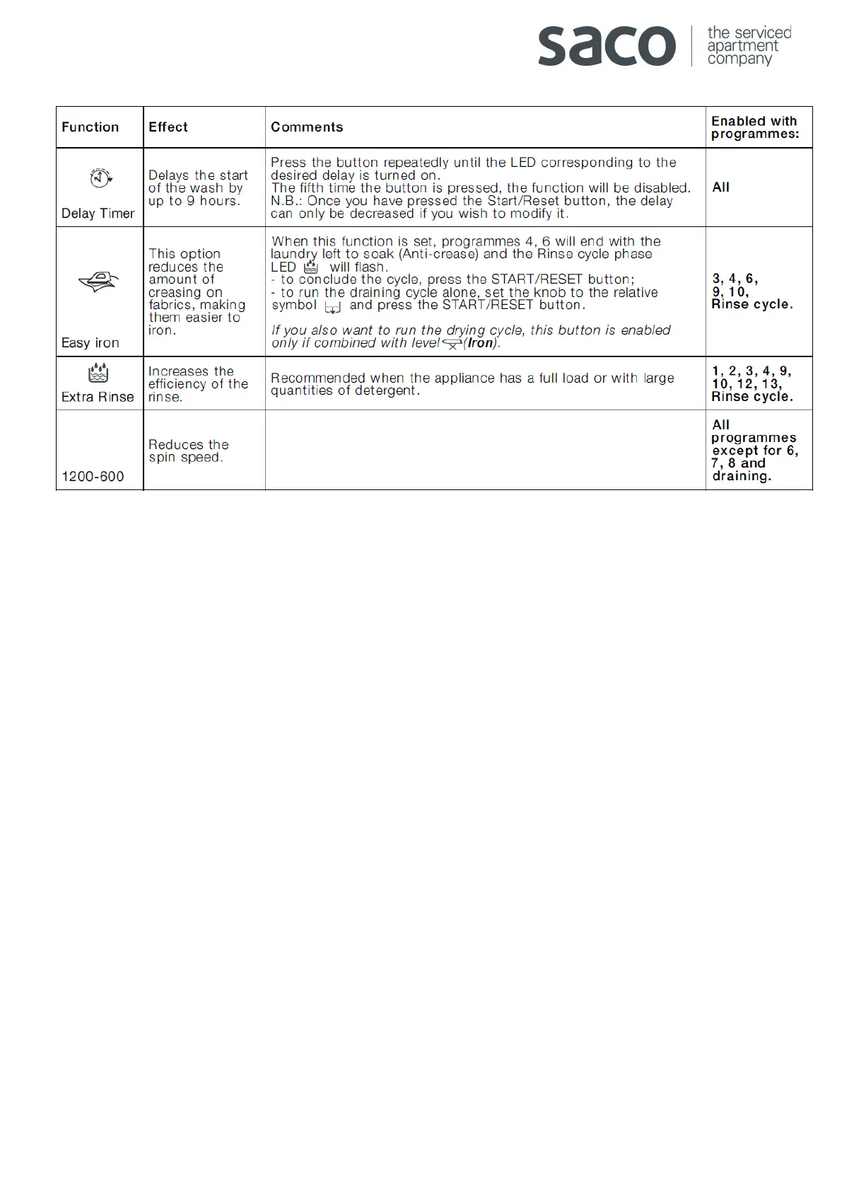 Indesit IWDE12 - Appliance Functions; Delay Timer Function; Easy Iron Function; Extra Rinse Function