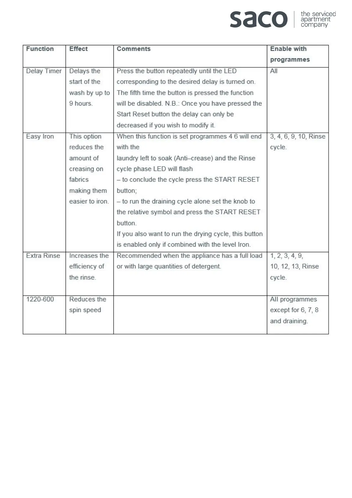 Indesit IWDE126 - Available Functions; Function Descriptions and Compatibility