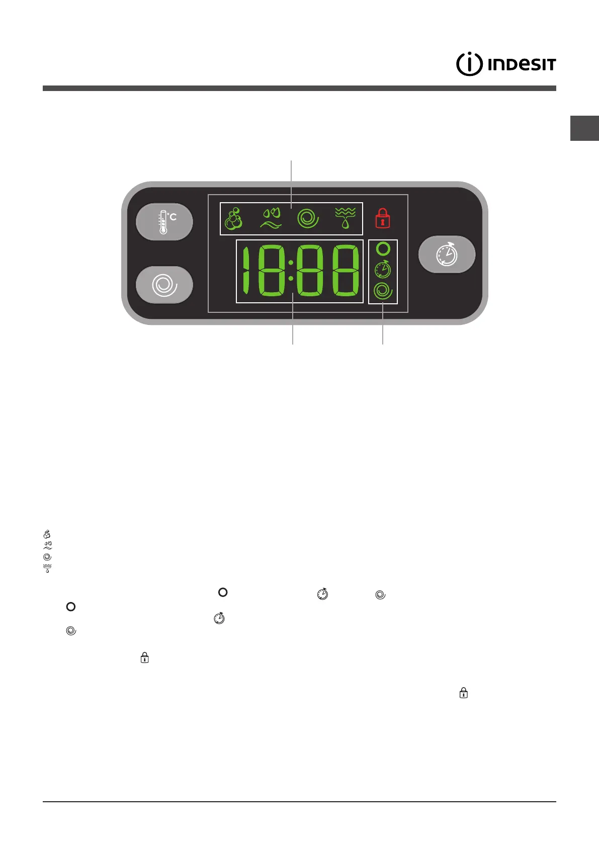 The icons corresponding to “temperature” , “Programmed start” and “spin” appear in section C from top to bottom: