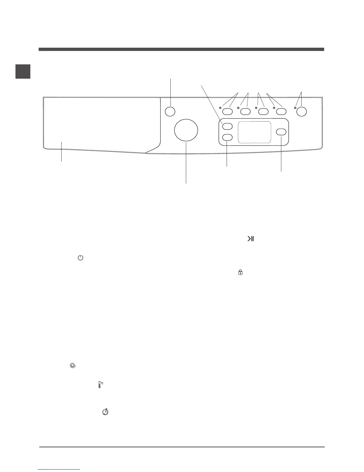 WASH CYCLE knob: used to set the desired wash cycle