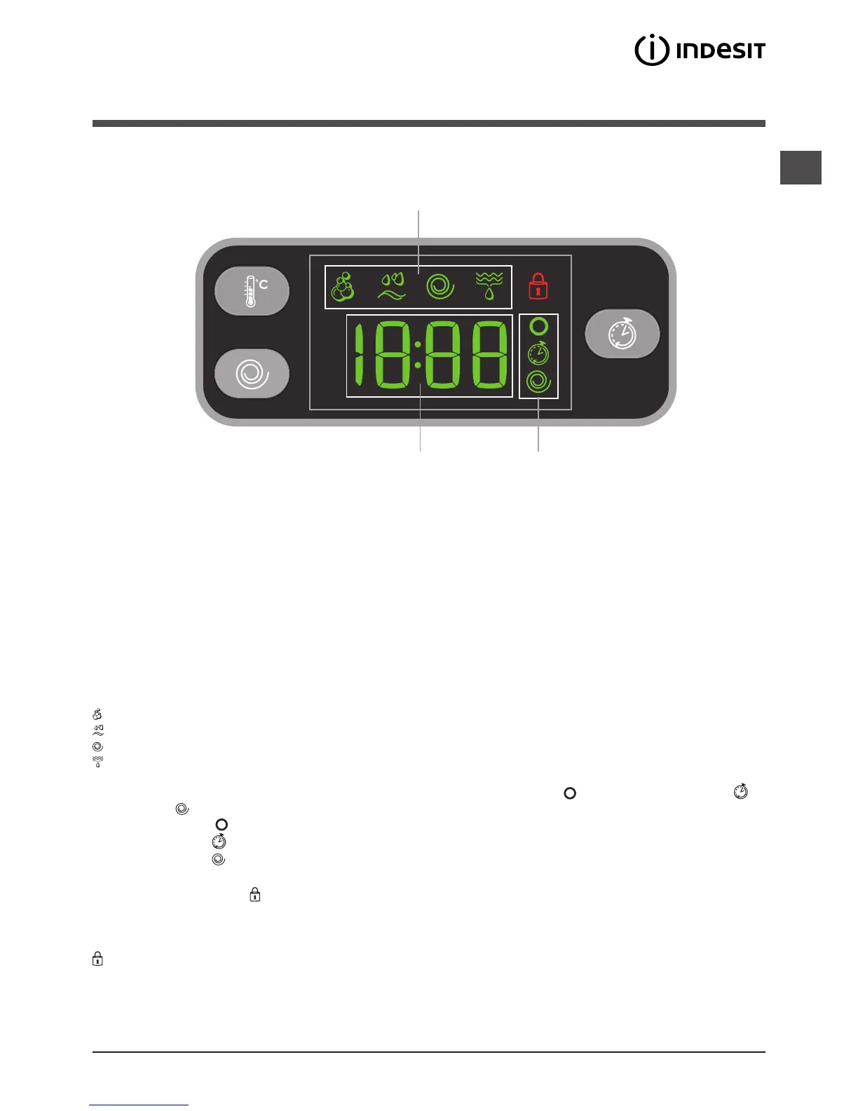 In de sectie C staan, van boven naar onder, de symbolen betreffende de “temperatuur” , de “UITGESTELDE START” en