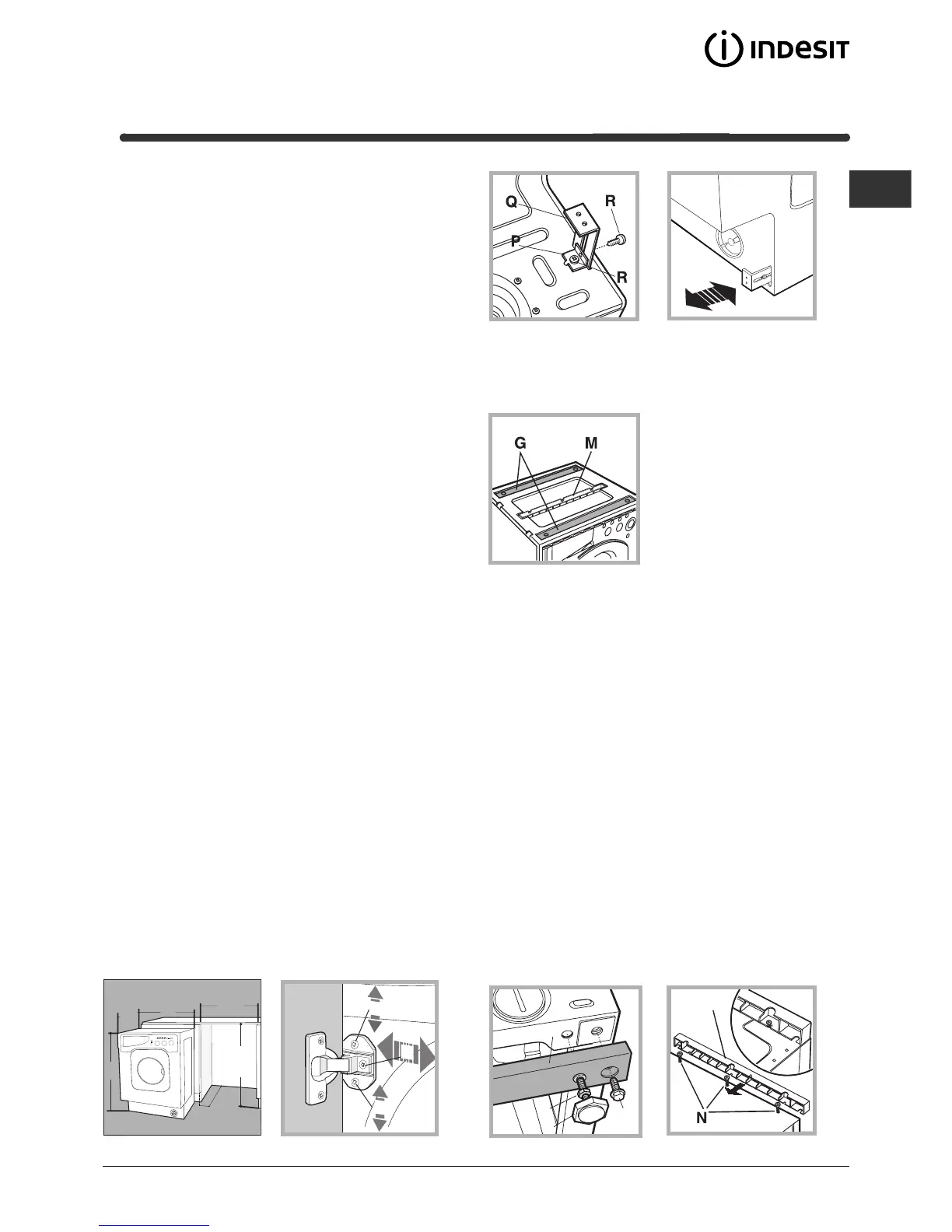 the appliance, fastening it in place using screws I (screwing