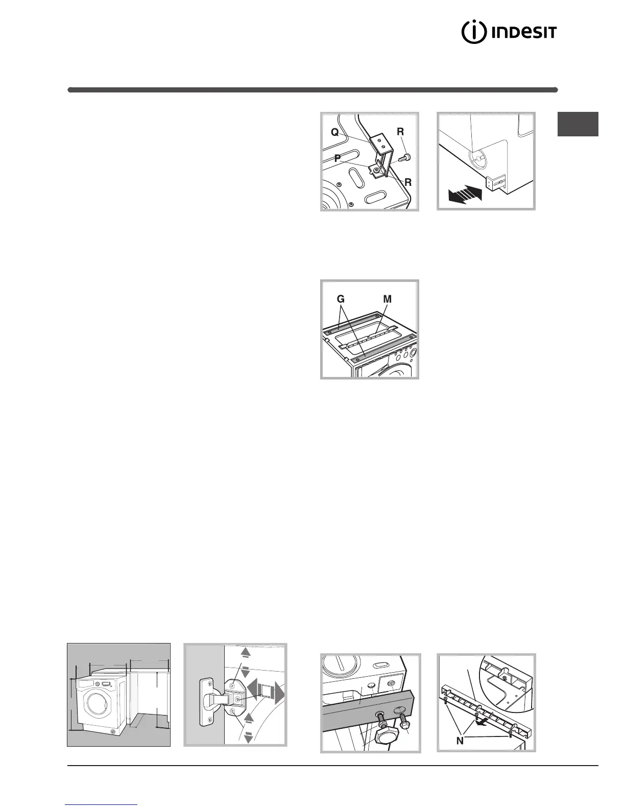 Fasten angle P using screw R, insert plinth guide