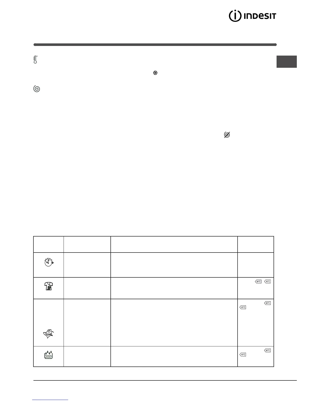 Turn the TEMPERATURE knob to set the wash temperature (see Programme table).