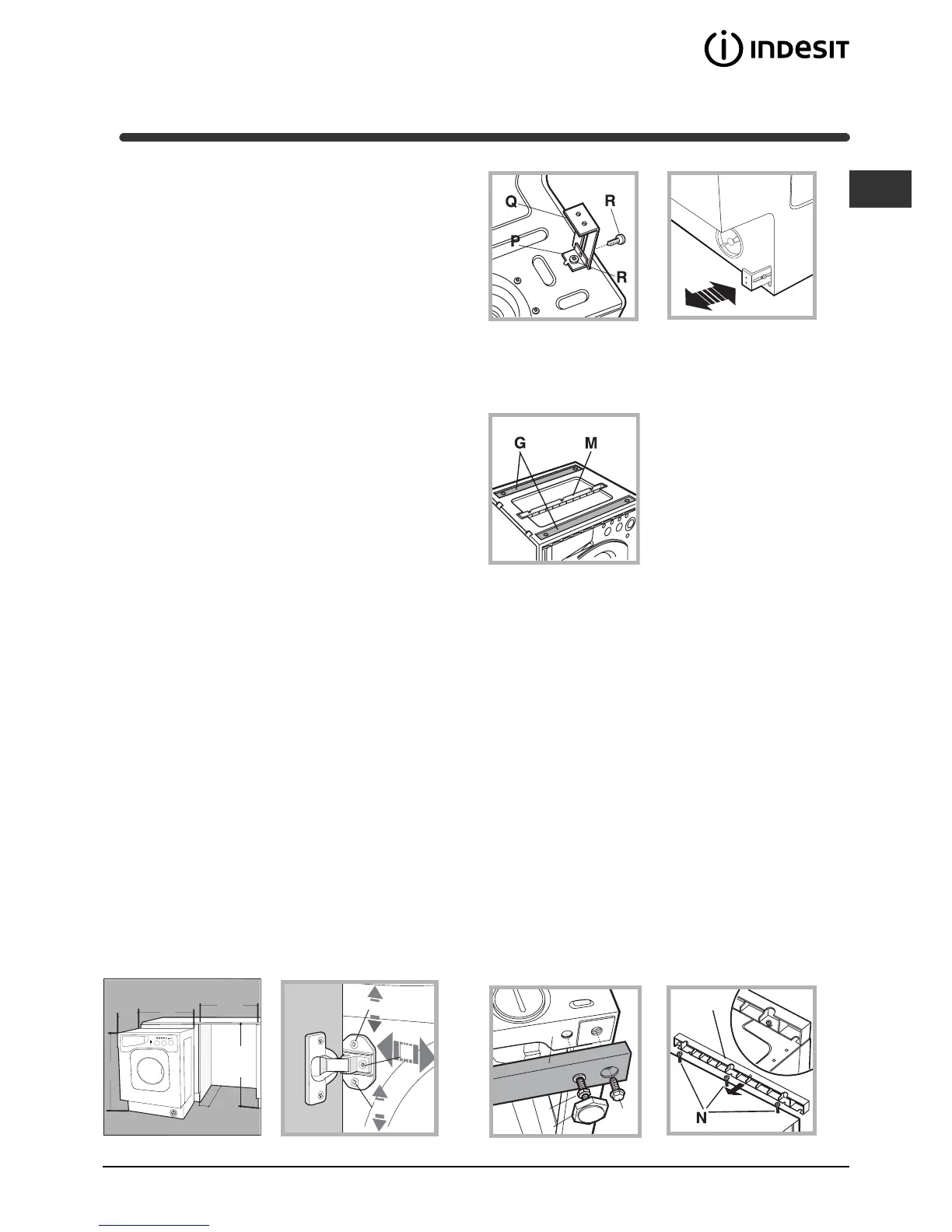 the appliance, fastening it in place using screws I (screwing