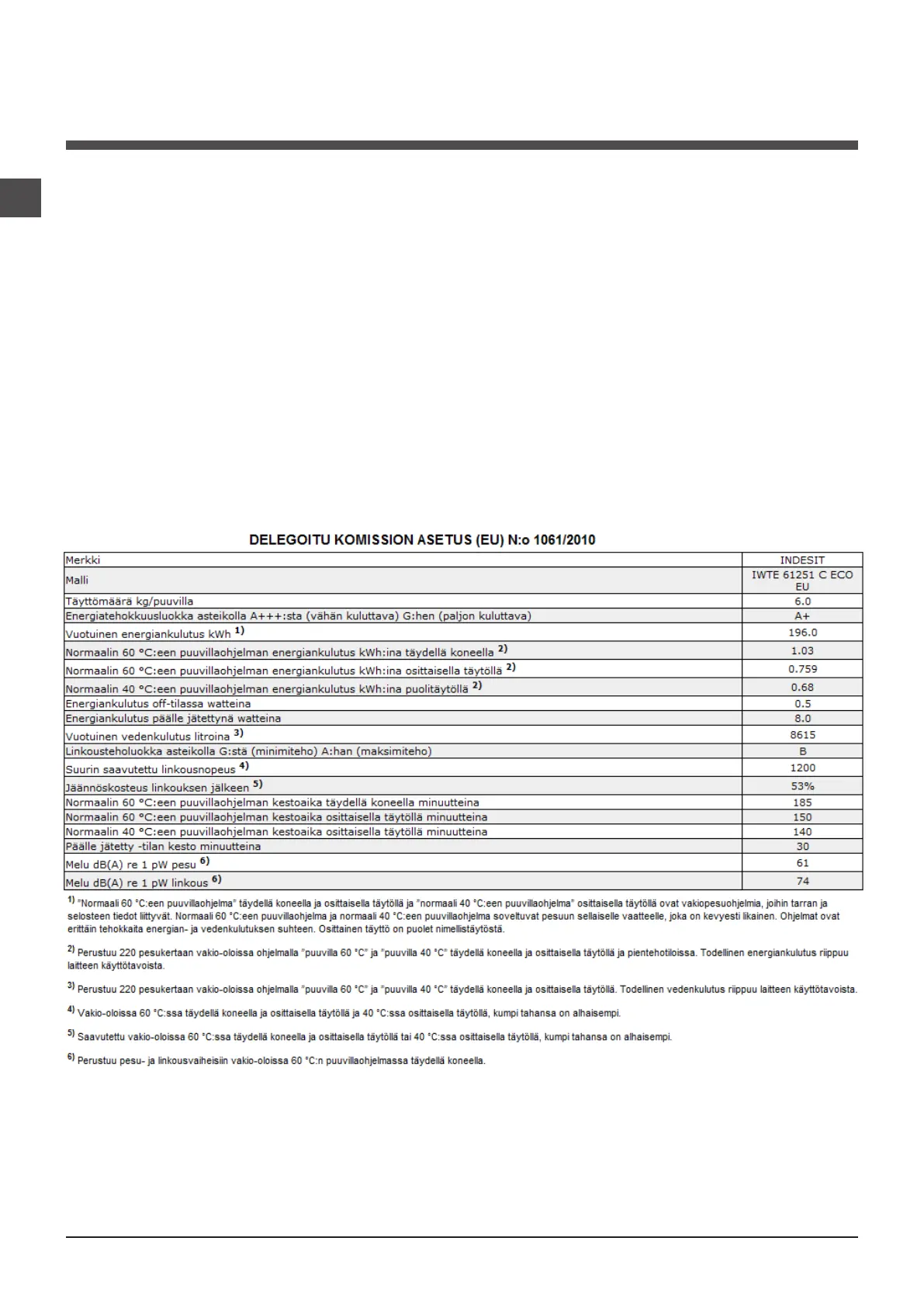 Nämä tiedot löytyvät tietolaatasta, joka sijaitsee pyykinpesukoneen takapuolella sekä etupuolelta avaamalla luukku.