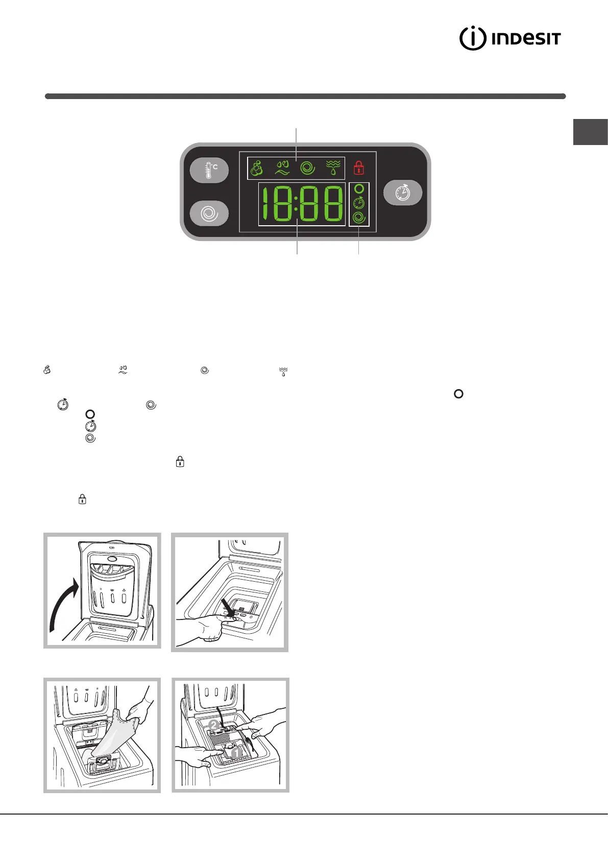 Il simbolo acceso indica che il coperchio è bloccato. Per evitare danni è necessario attendere che il simbolo si spenga prima