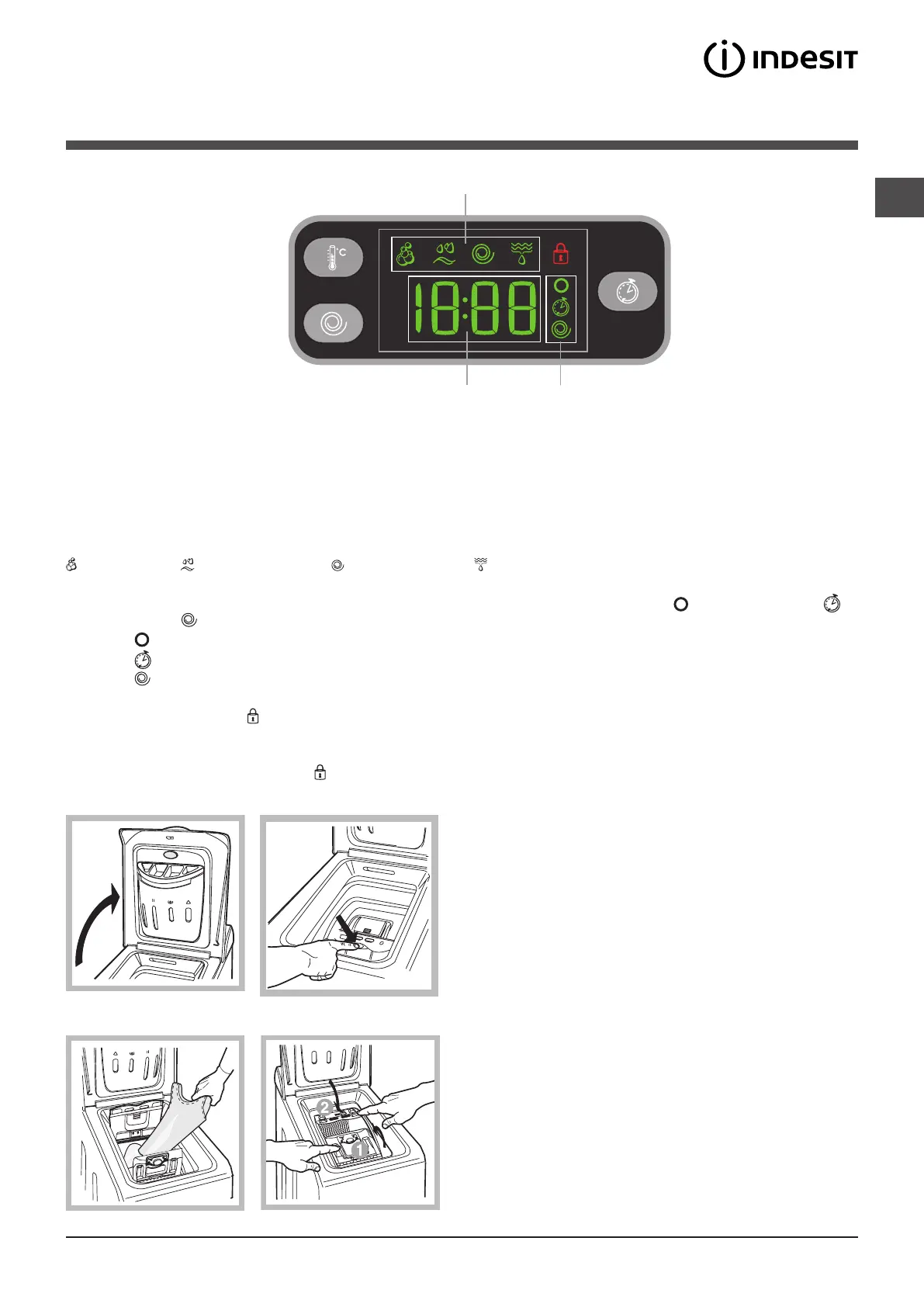 Na secção A é visualizada a duração dos vários programas à disposição e com o ciclo iniciado o tempo faltante para o fim do