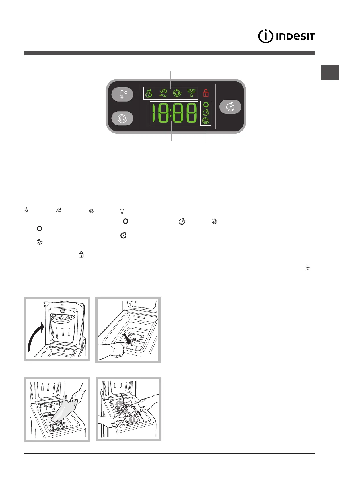 The icons corresponding to “temperature” , “Programmed start” and “spin” appear in section C from top to bottom: