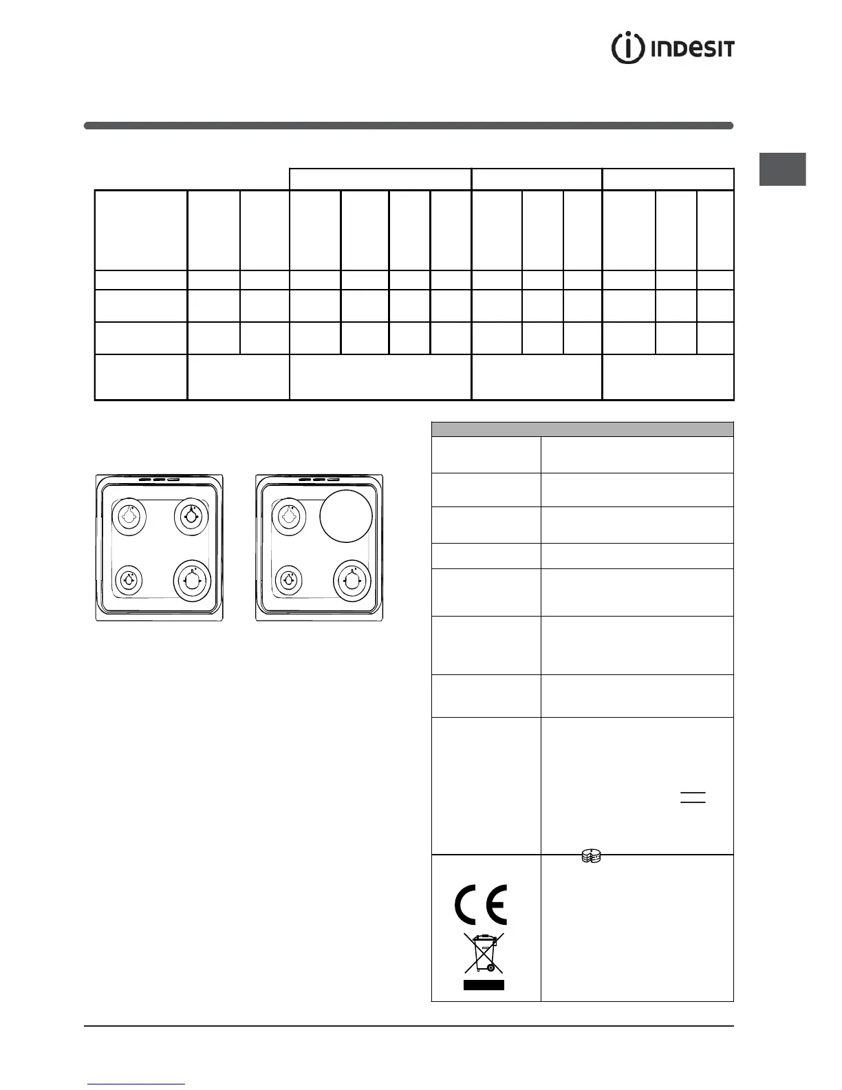 Table of burner and nozzle specifications