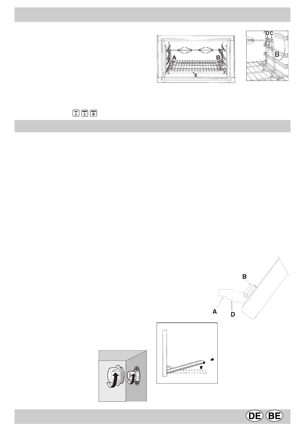 • Backofentür ganz öffnen und die 2 kleinen Hebel "B" hoch-