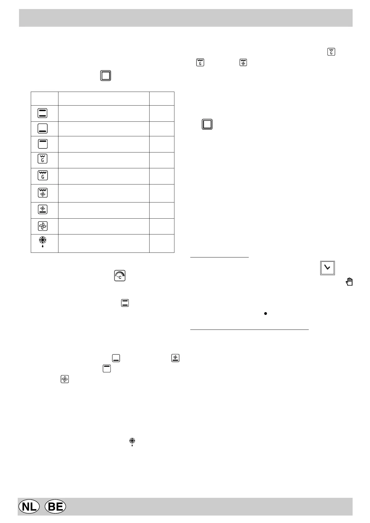 (onderwarmte + ventilator) of (bovenwarmte) plaatsen.