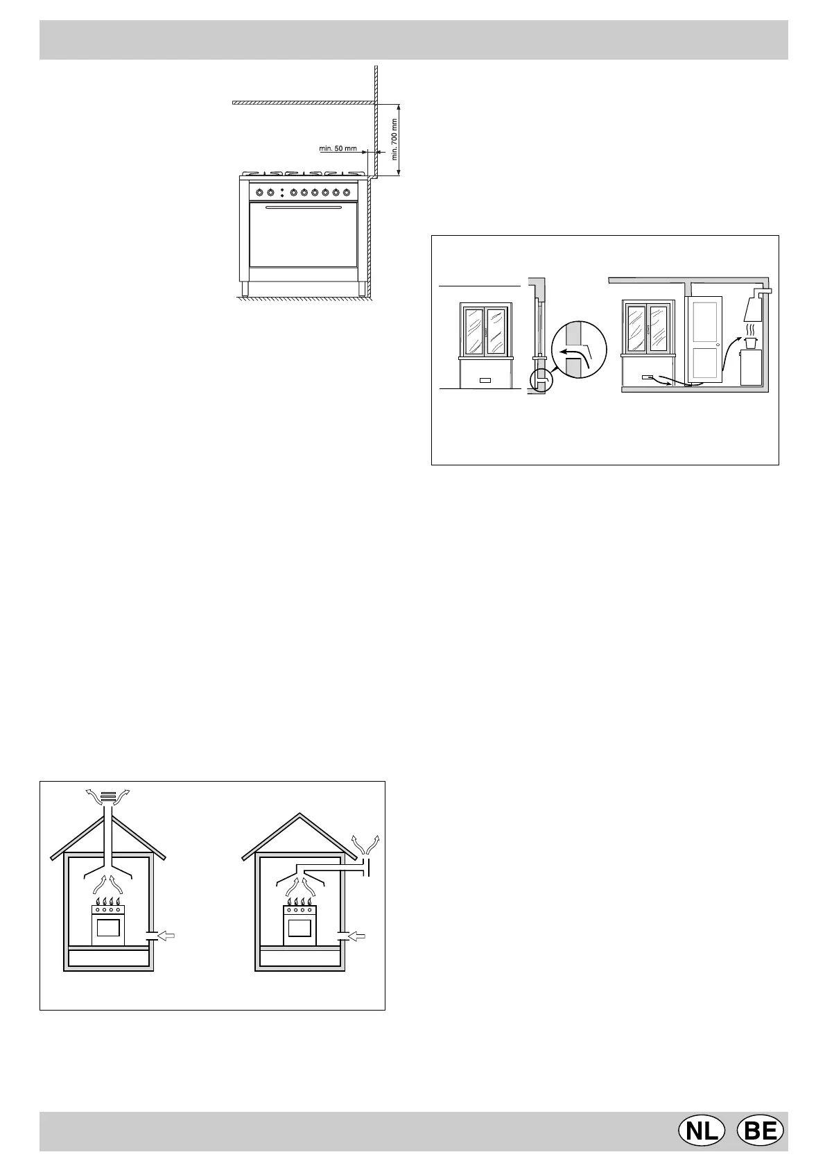 • Het apparaat moet de verbrandingsproducten afvoeren