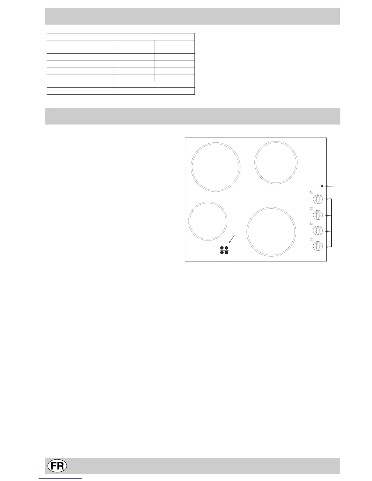 Description de la table de cuisson