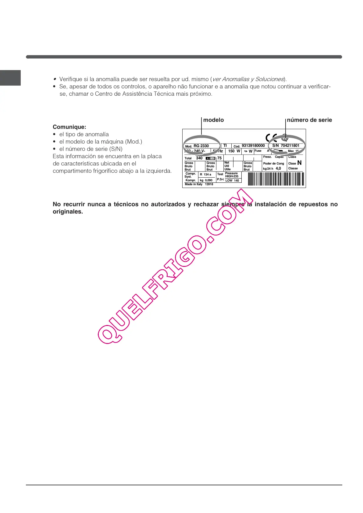 No recurrir nunca a técnicos no autorizados y rechazar siempre la instalación de repuestos no