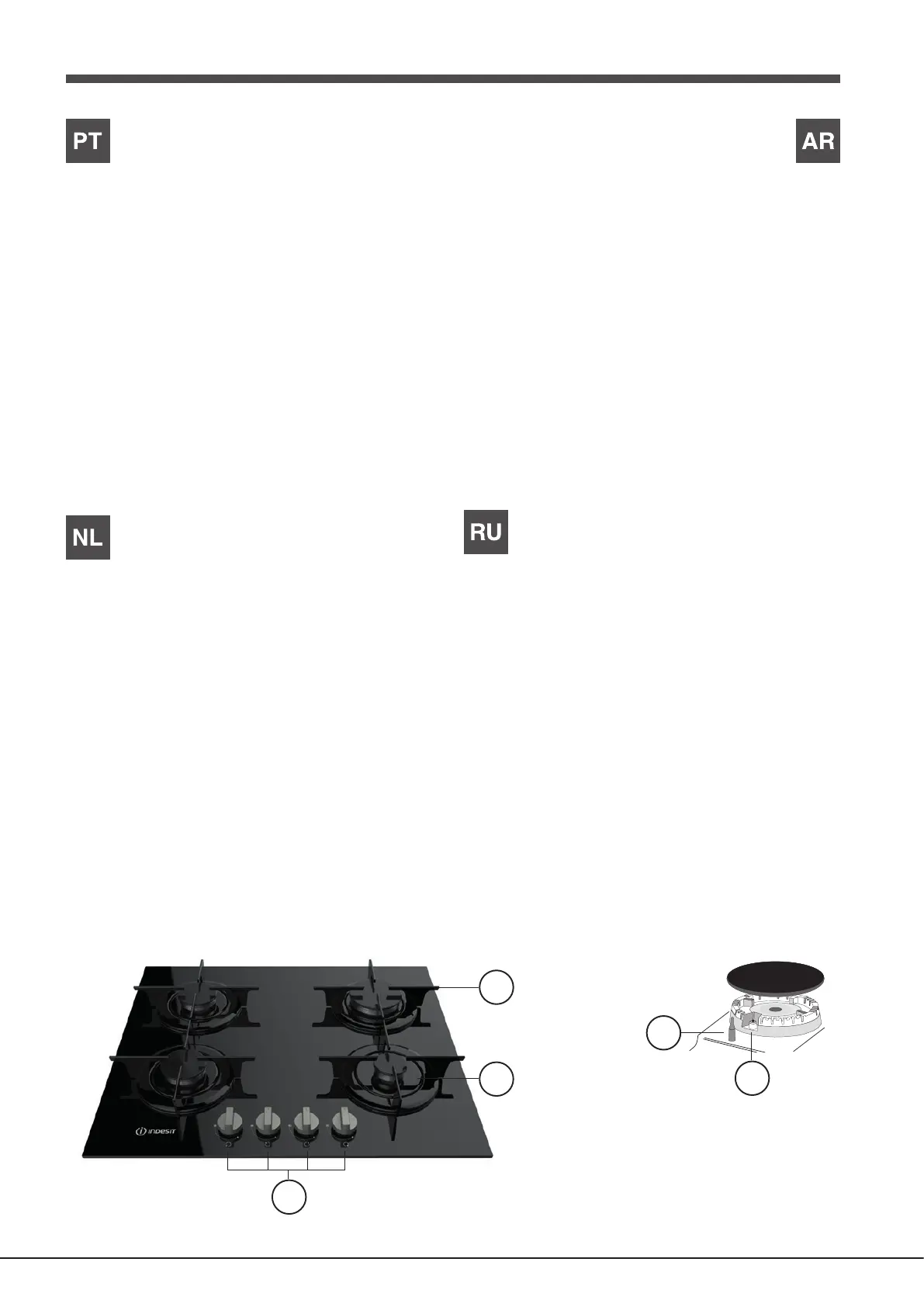 • Knoppen van de GASBRANDERS voor het regelen van de vlam.