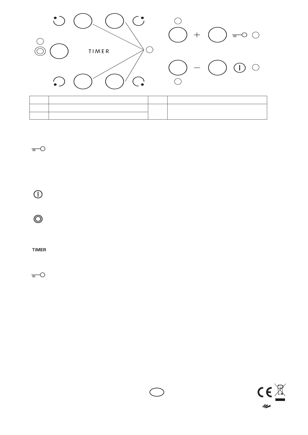 cooking zone. The indication “00” blinks on the 2 displays. Press buttons “C” or “E” to set the time