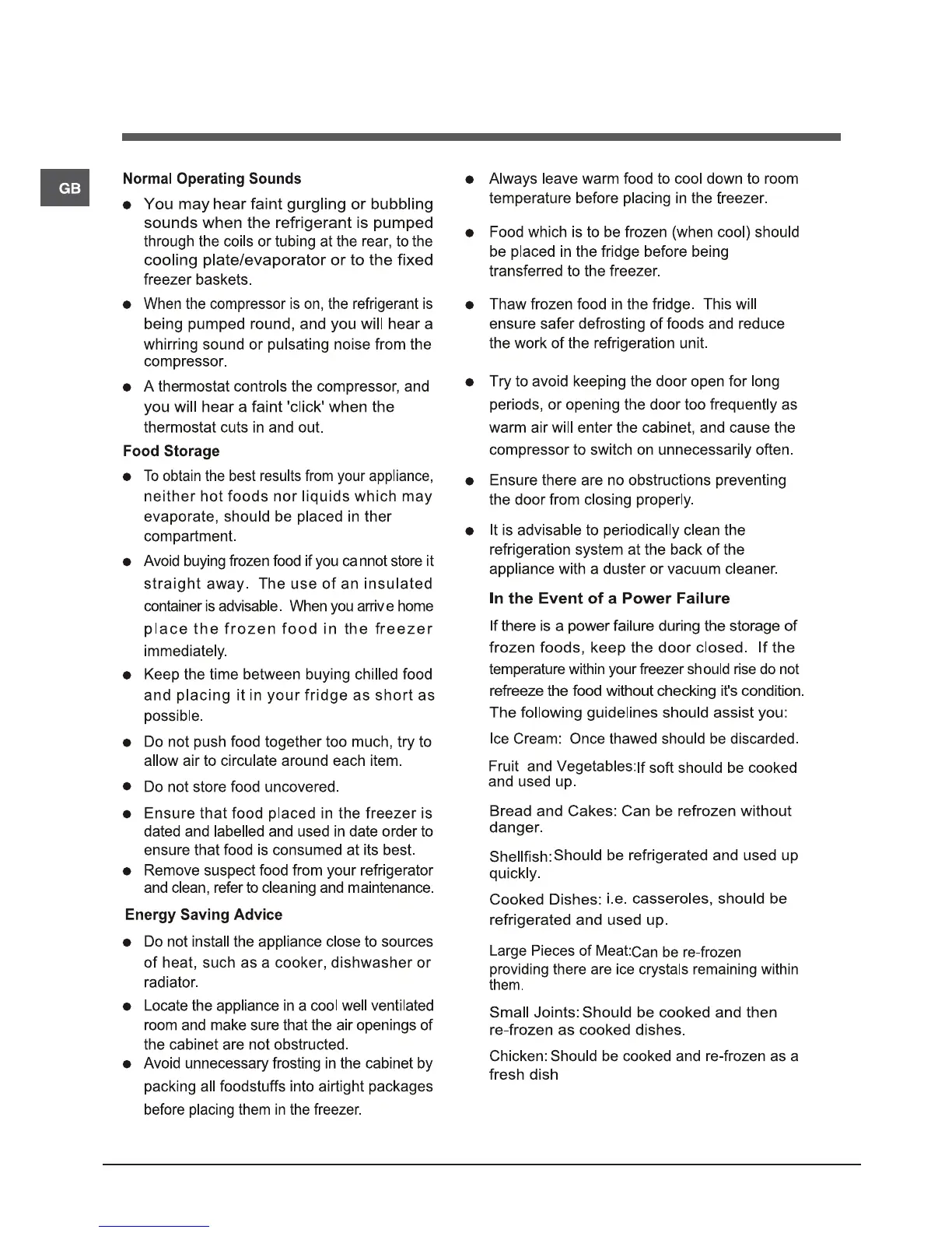 Indesit TFAA 10 - Hints and Tips; Normal Operating Sounds; Food Storage