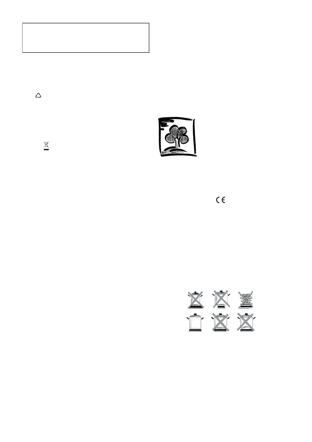 • This cooking hob (Class Y) has been designed to be used only for cooking.