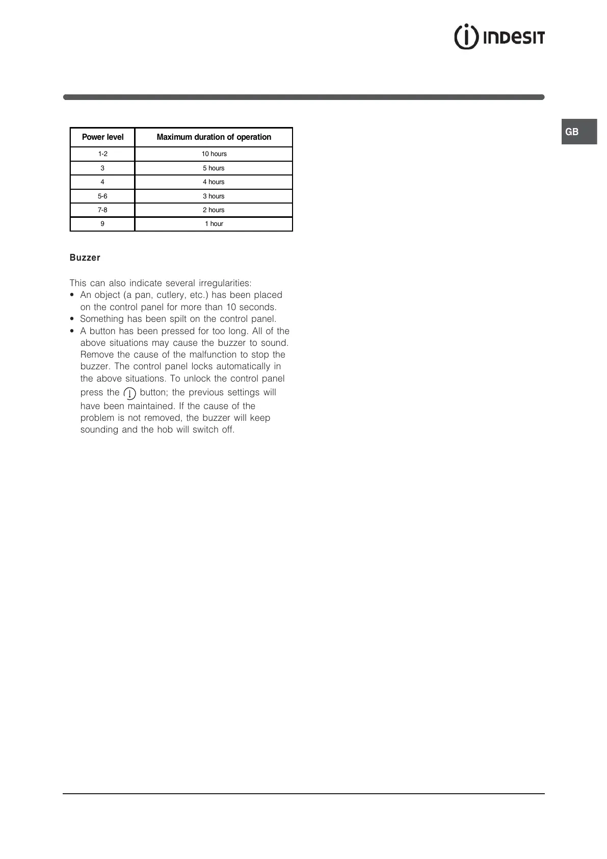 sounding and the hob will switch off.